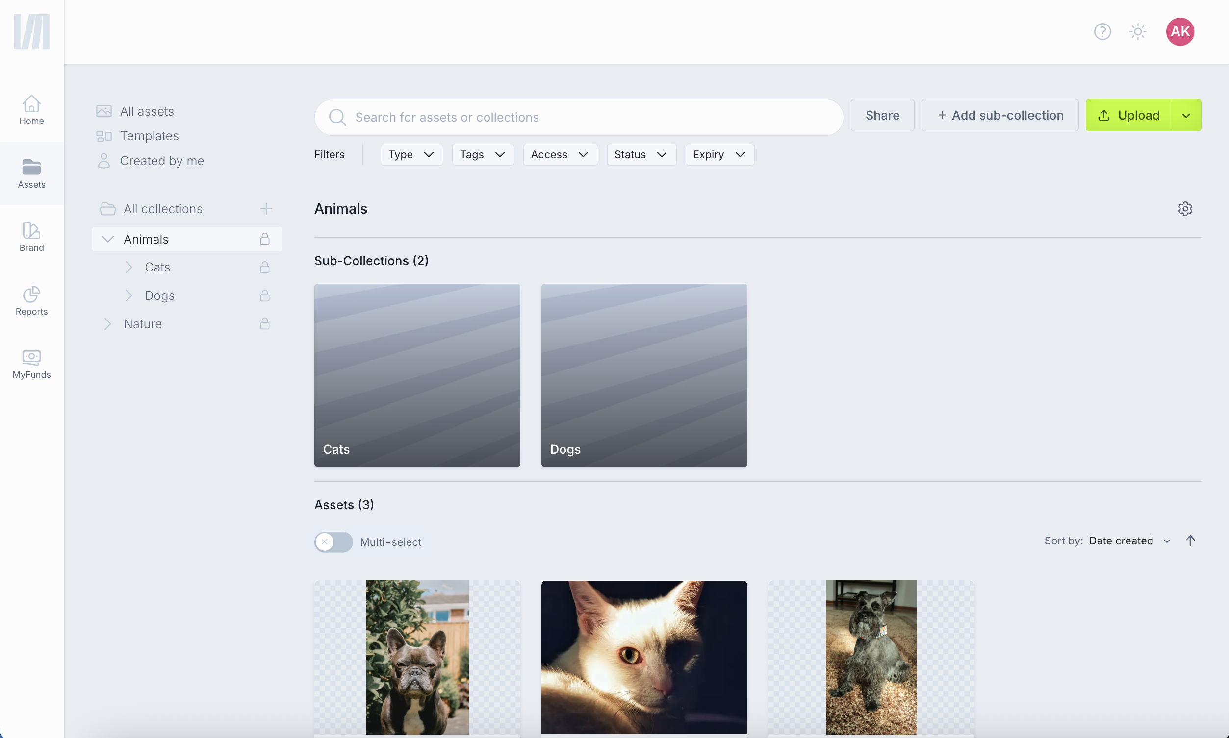You can now group your assets into Collections, shared folders for campaign materials, event packs, or anything else your team needs quick access to. Collections live within the asset library and can be managed by anyone with permissions.